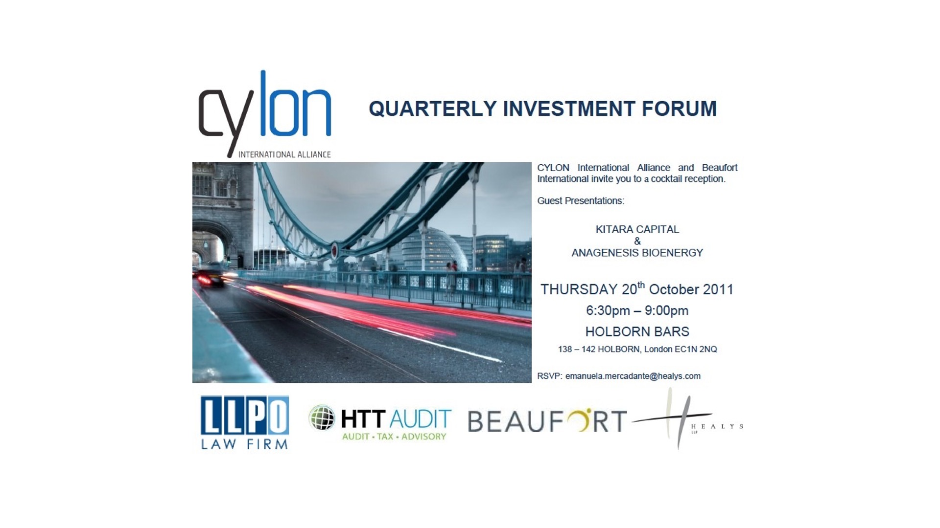 CYLON’s Quarterly Investment Forum, held in UK, London. We expect to see you all there.!!