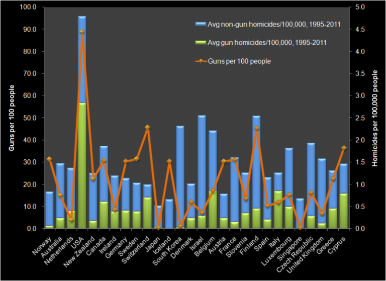 There is absolutely no correlation between firearms and homicides as the following chart suggests: